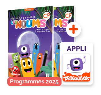 Conçue par Rémi Brissiaud et DragonBox, la méthode Les Noums est proposée sous forme de fichier en deux volumes, avec téléchargement inclus d’une application numérique d'une très grande richesse. Elle associe des objets connus qui ont fait leur preuve (réglettes, nombres en couleur) à des outils numériques novateurs (en collectif, voire aussi en individuel) et suscite un très fort engagement des élèves.
